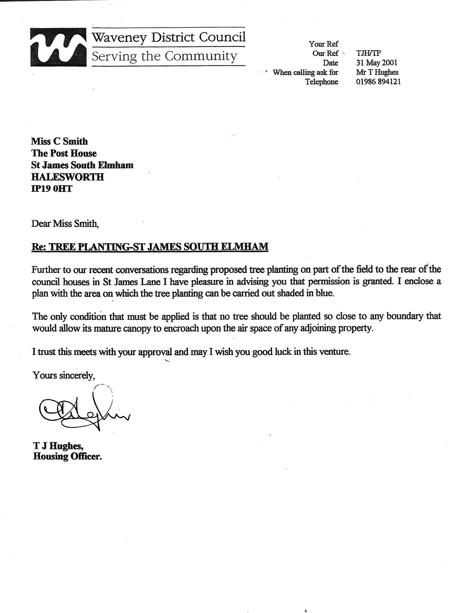 The trees are now all growing well, and everyone is most welcome to go and look at the wood and walk round the trees. The wood is situated at the end of the piece of land behind the houses on St James’s Lane. Our new wood was the subject of the recent meeting of tree wardens for Waveney District Council. The other tree wardens and the tree officer congratulated our village on the wood and were impressed with the community spirit and cooperation that was evident from the fun that everyone had on the day of the planting.