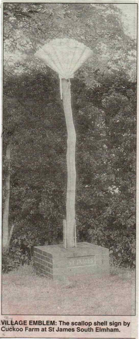 The April 1998 Meeting considered ideas that had been put forward, among which were to erect a new village sign, and a working group was formed to look at options for its design and where it should be sited. The possibility of one sign in the middle of the village was looked at, but the conclusion was to have a sign at each end. One illustrating village life and activities, and the other the scallop shell emblem of St James.